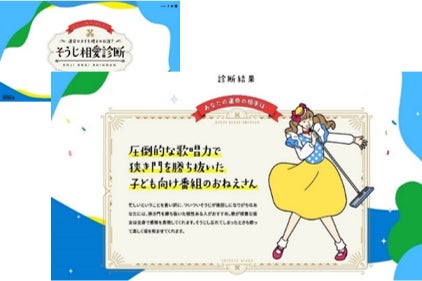 診断テストを通じて、自身の掃除指数が測れるほか、掃除を擬人化したキャラクターたちが、診断結果に応じたおすすめの掃除方法をアドバイスしてくれる診断コンテンツです。