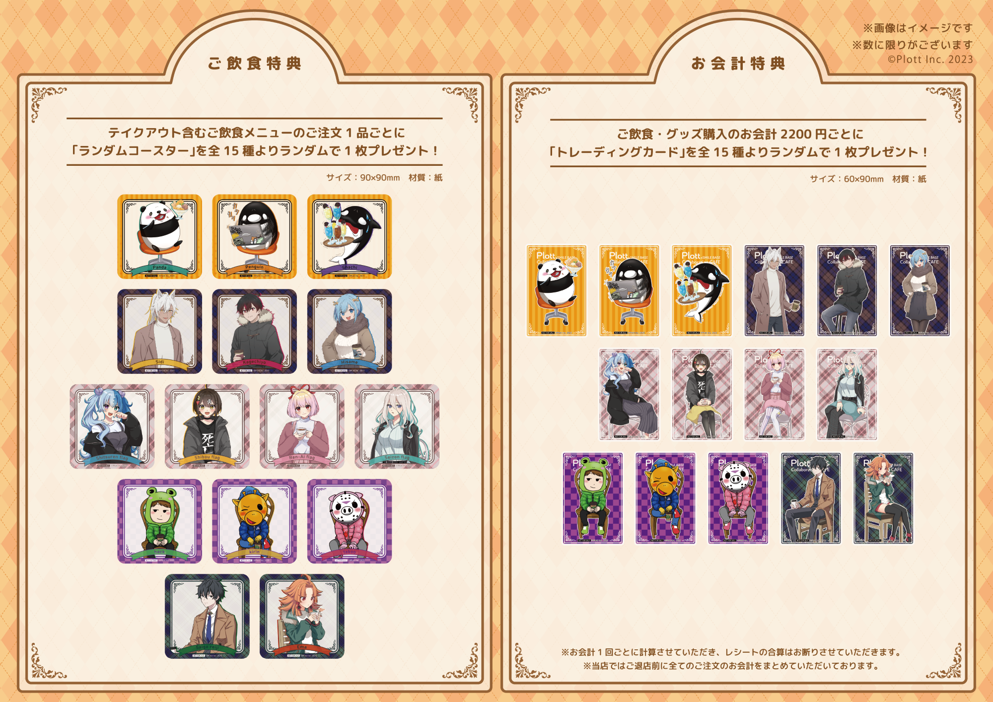 飲食・物販を含むお会計金額2,200円(税込)ごとにランダムで1枚プレゼント