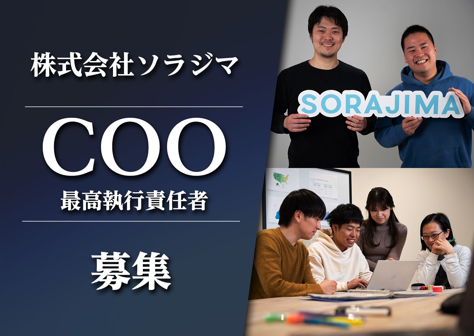 株式会社ソラジマの代表取締役Co-CEOである萩原鼓十郎・前田儒郎が、公式YouTubeチャンネルである「ソラジマTV」においてCOOの募集を公表し、求める人材について説明しました。