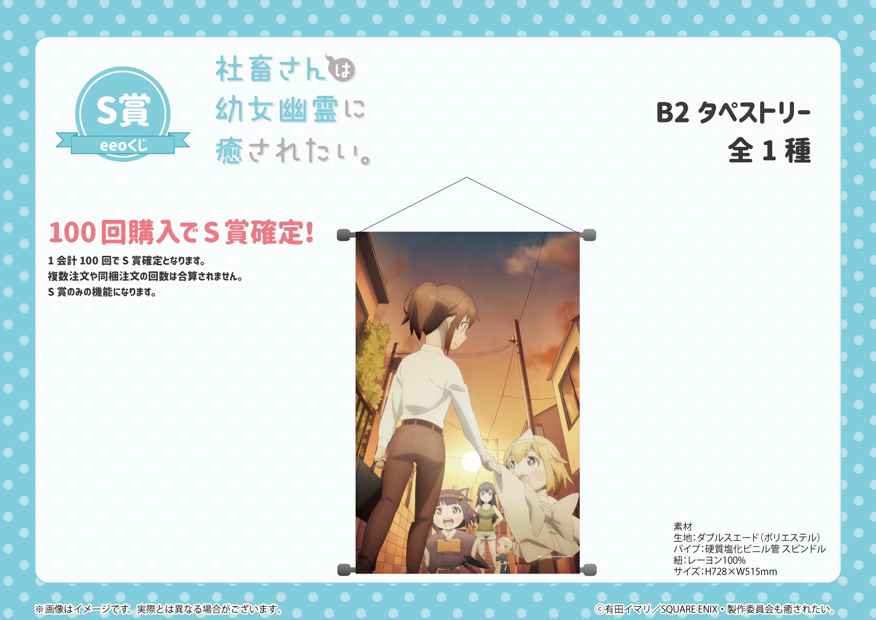 今回の目玉商品となるS賞には、B2タペストリーが登場! 深夜ではなく夕暮れのなか、仲良く手を繋いで家路につく伏原さんと幽霊ちゃん。心が洗われるような優しい日常を、728×515mmの躍動感あふれるビッグなサイズで追体験することができます。