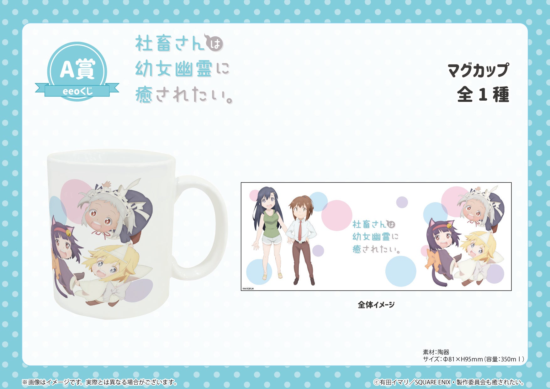 続いてA賞に登場したのは、TVアニメのキービジュアルを使用したマグカップ。350mlの飲み物がたっぷり入る大きめサイズで、ダイナミックに描かれたユルかわな幽霊ちゃんたちがデスク上で華やかに映えます♪