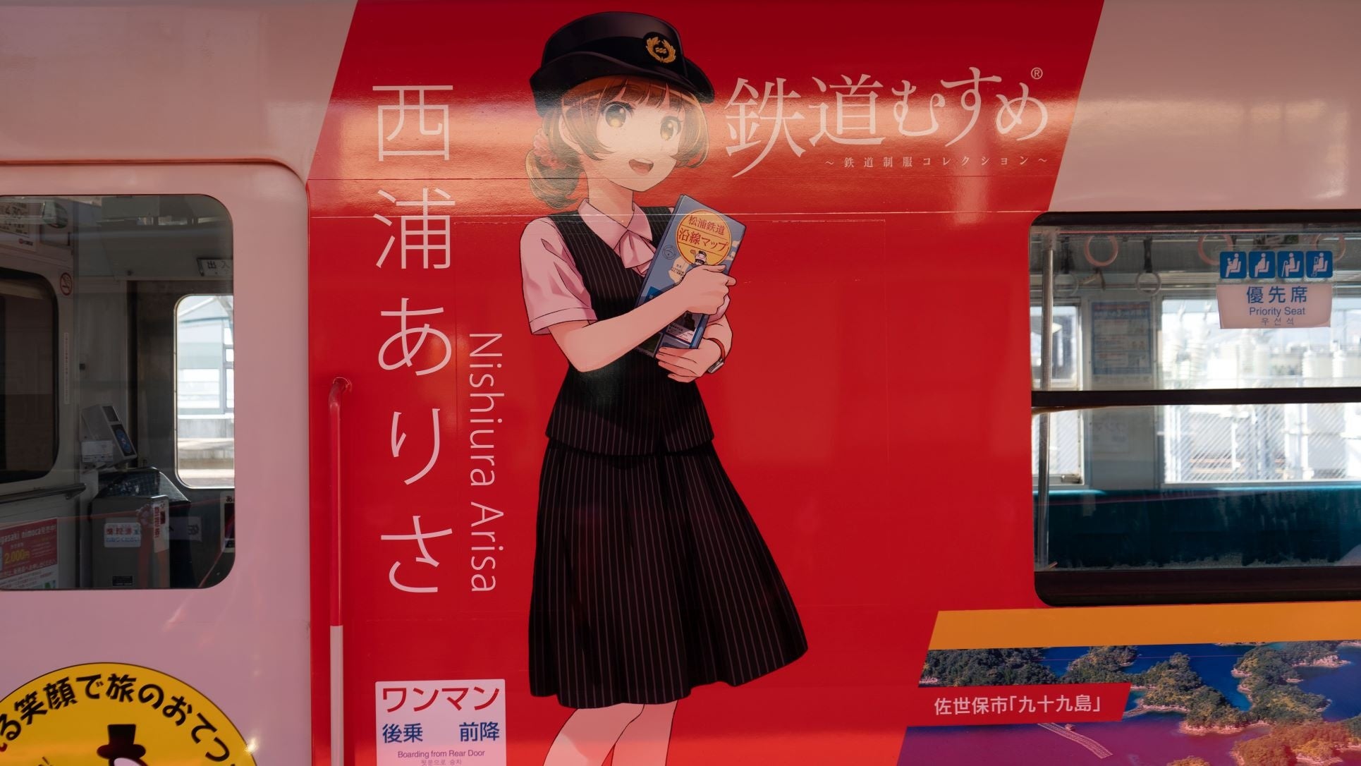 松浦鉄道株式会社、株式会社ポニーキャニオンは、2月4日に松浦鉄道佐世保駅にて「鉄道むすめ」西浦ありさと松浦鉄道沿線6自治体の名所が描かれた車両をお披露目する『ラッピング車両出発式』を行った。当日はラッピング車両のお披露目の他、「鉄道むすめ」西浦ありさのキャラクターボイスを務める安齋由香里による生観光アナウンスが実施された。