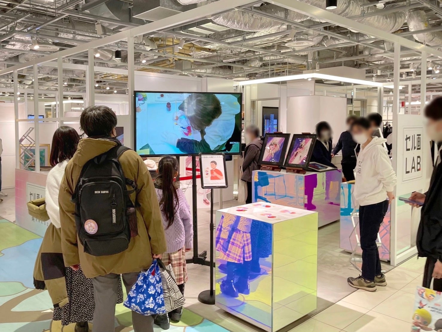 店頭のサイネージにはセル画塗り師の手元を映すLIVE映像が映し出され、たくさんの方々が足を止められていました。普段触れる機会のない「セル画」ですが、店頭には「魔法のプリンセス ミンキーモモ」(©︎葦プロダクション)より「ミンキーモモ」の新作セル画を実際に触っていただけるスペースが登場。