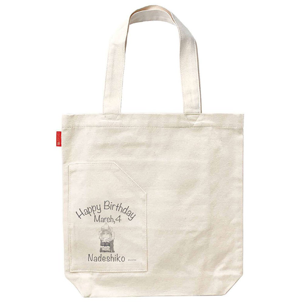 あfろ先生が描いた、キャンプグッズに囲まれて満面の笑みのなでしことリラックスしたあおいの可愛いイラストがプリントされた特別なバースデートートです。