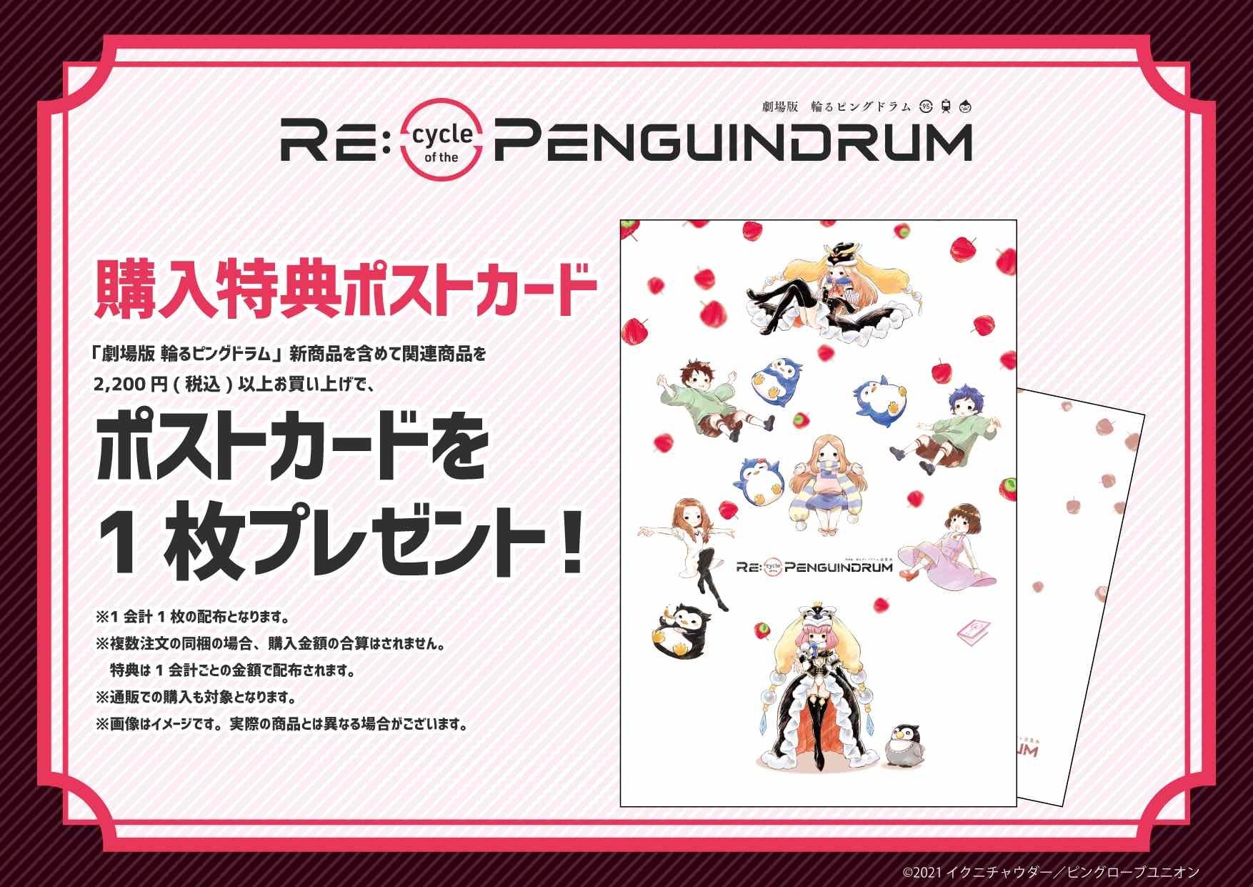 劇場版『RE:cycle of the PENGUINDRUM』POP UPコーナーでは、『RE:cycle of the PENGUINDRUM』の新作グッズを含む関連グッズを2,200円(税込)以上お買い上げで、ポストカードを1枚プレゼント! POP UPコーナーの記念として、ここでしか手に入らないポストカードをぜひゲットしてみてください‼