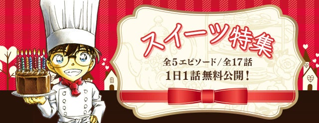 本特集では、バレンタインのシーズンにあわせてスイーツが関係するエピソードをピックアップします。「名探偵コナン公式アプリ」内にて、全5エピソード17話を、1日1話無料でお読みいただくことができ、さらにプレミアムクラブ会員の方は、公開された話は期間中いつでも無料購読できます。また、会員ではない方も期間中、第33巻の「バレンタインの真実」と各エピソードの1話目は、公開後いつでも無料購読できます。