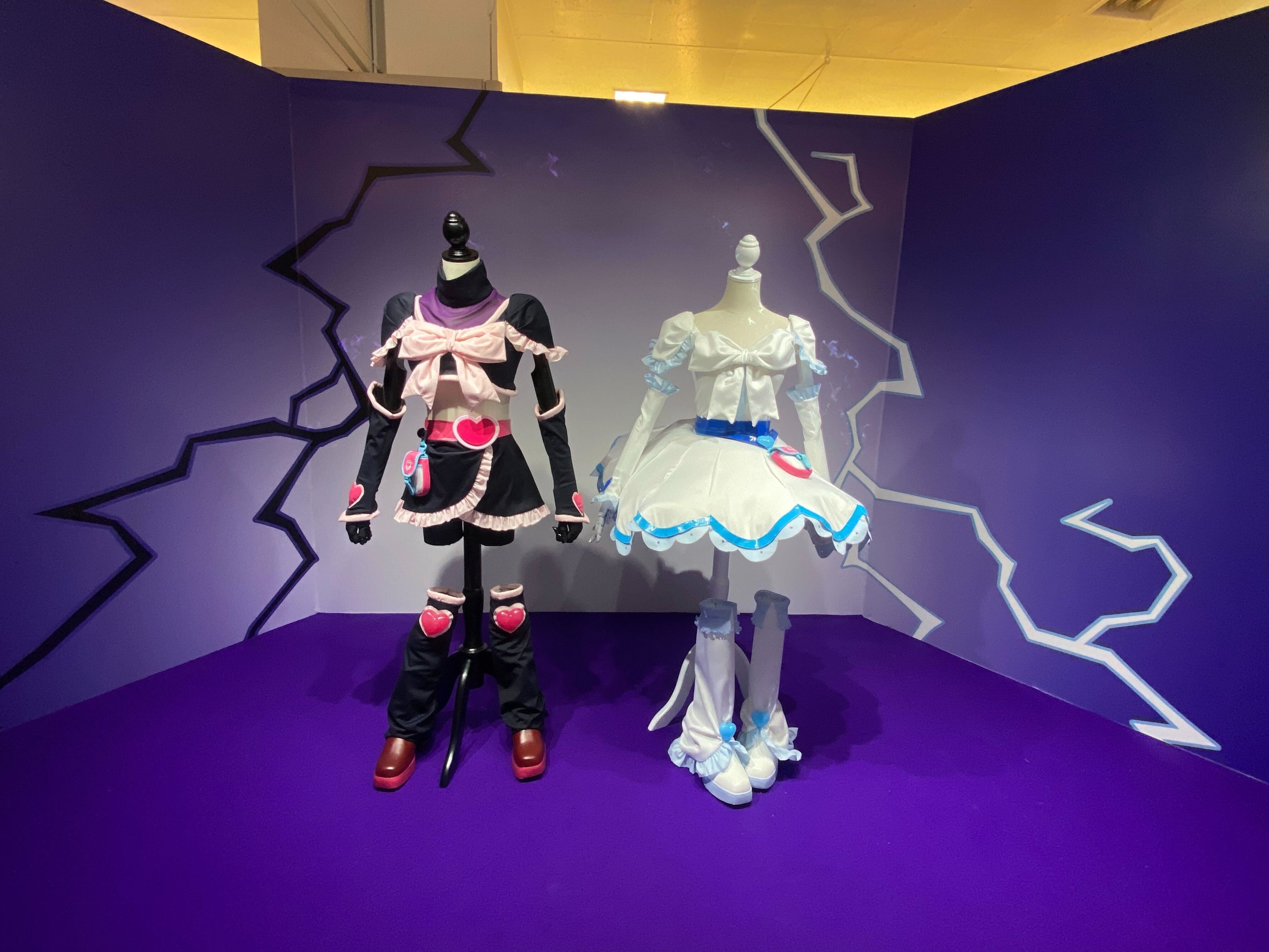 アニメ設定資料を元に細部まで再現したキュアブラックとキュアホワイト等身大コスチュームを制作しました。2人の立ち方の違いまで、リアルにキャラクターの個性を具現化しています。