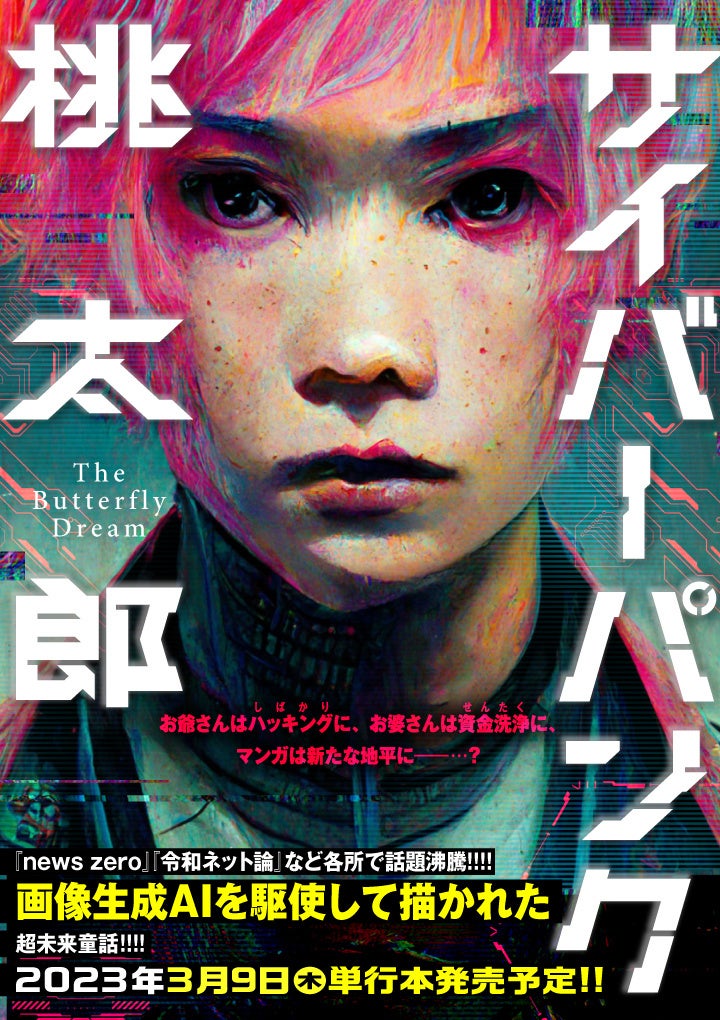 NHK・news zeroほか各種メディアで話題をさらった、AI画像生成ソフト「Midjourney」を駆使して描かれたRootport氏によるフルカラーコミック『サイバーパンク桃太郎』が新潮社バンチコミックスより3月9日に刊行。書籍版には加筆修正、画像生成AIを使ったマンガの作り方を同著者が解説する10Pの書き下ろしを収録。さらに電子書籍版には物語づくりの実践を解説した書き下ろしも加えることとなりました。