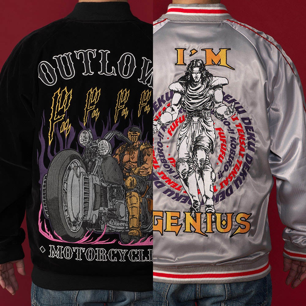 作中屈指の悪党として人気を誇る「ジャギ」と「アミバ」!この二人を総刺繍で仕上げた、偽物ではない本物クオリティなリバーシブルスカジャンが登場!黒ベースのジャギSIDE、シルバーベースのアミバSIDE!あなたが着たいのは、天下の外道か天才か?!