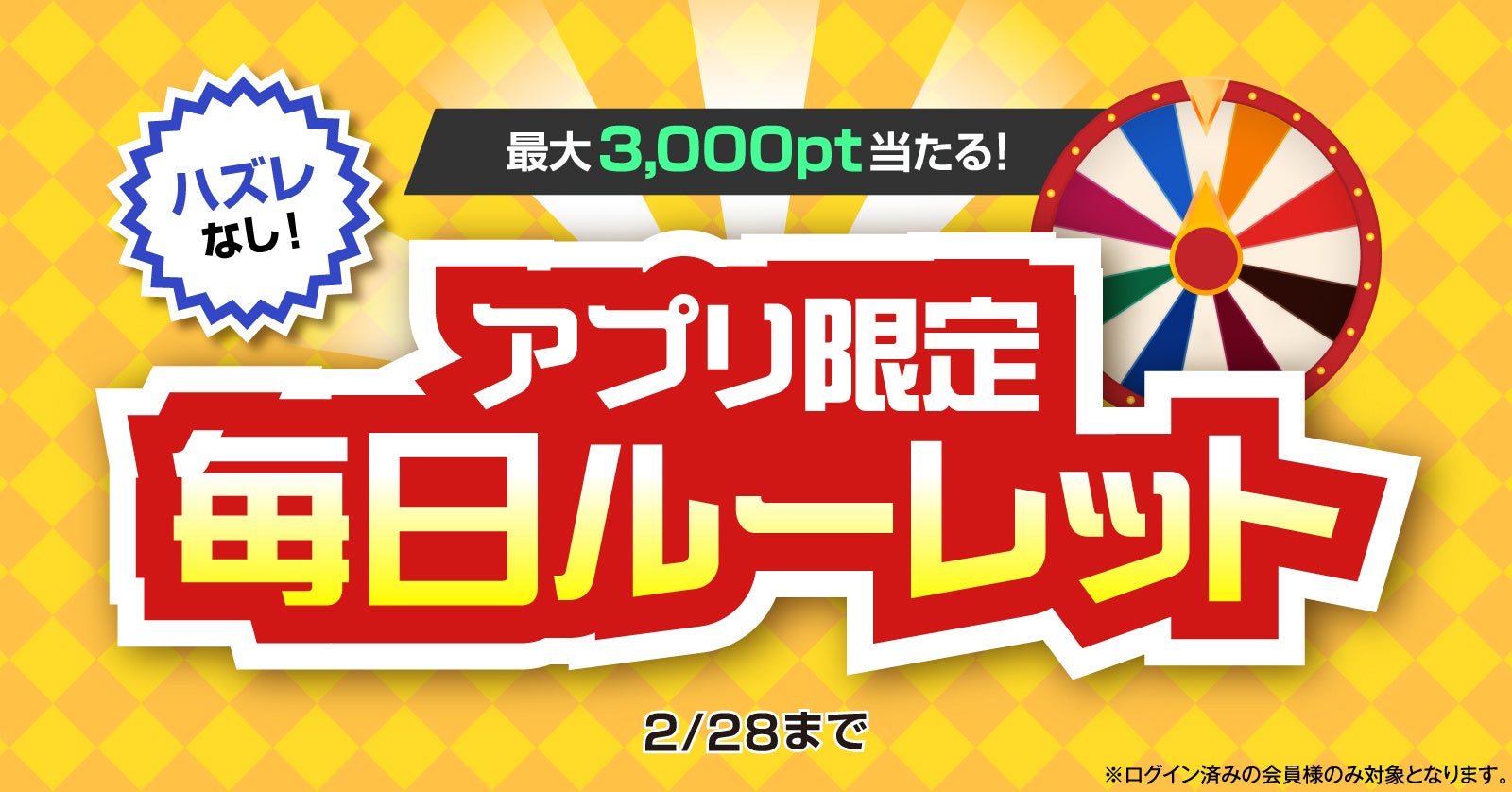 株式会社TORICO(本社:東京都千代田区、代表取締役社長:安藤拓郎)が運営するECアプリ『漫画全巻ドットコムアプリ』にて、最大3,000ptが当たるルーレットを2月28日(火) 23:59まで開催いたします。