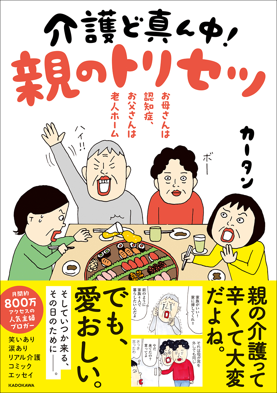 株式会社KADOKAWA(代表取締役社長:夏野剛、本社:東京都千代田区、以下KADOKAWA)は、2023年2月24日(金)に、人気主婦ブロガー・カータン著『お母さんは認知症、お父さんは老人ホーム 介護ど真ん中!親のトリセツ』を発行いたしました。また、2023年3月5日(日)には、本書の発売を記念したトークショーも開催。著者のブログにも度々登場する友人のK美さん、マリリンさんをゲストに迎え、書籍制作の裏話や書籍では書ききれなかったお話などを語り尽くします。