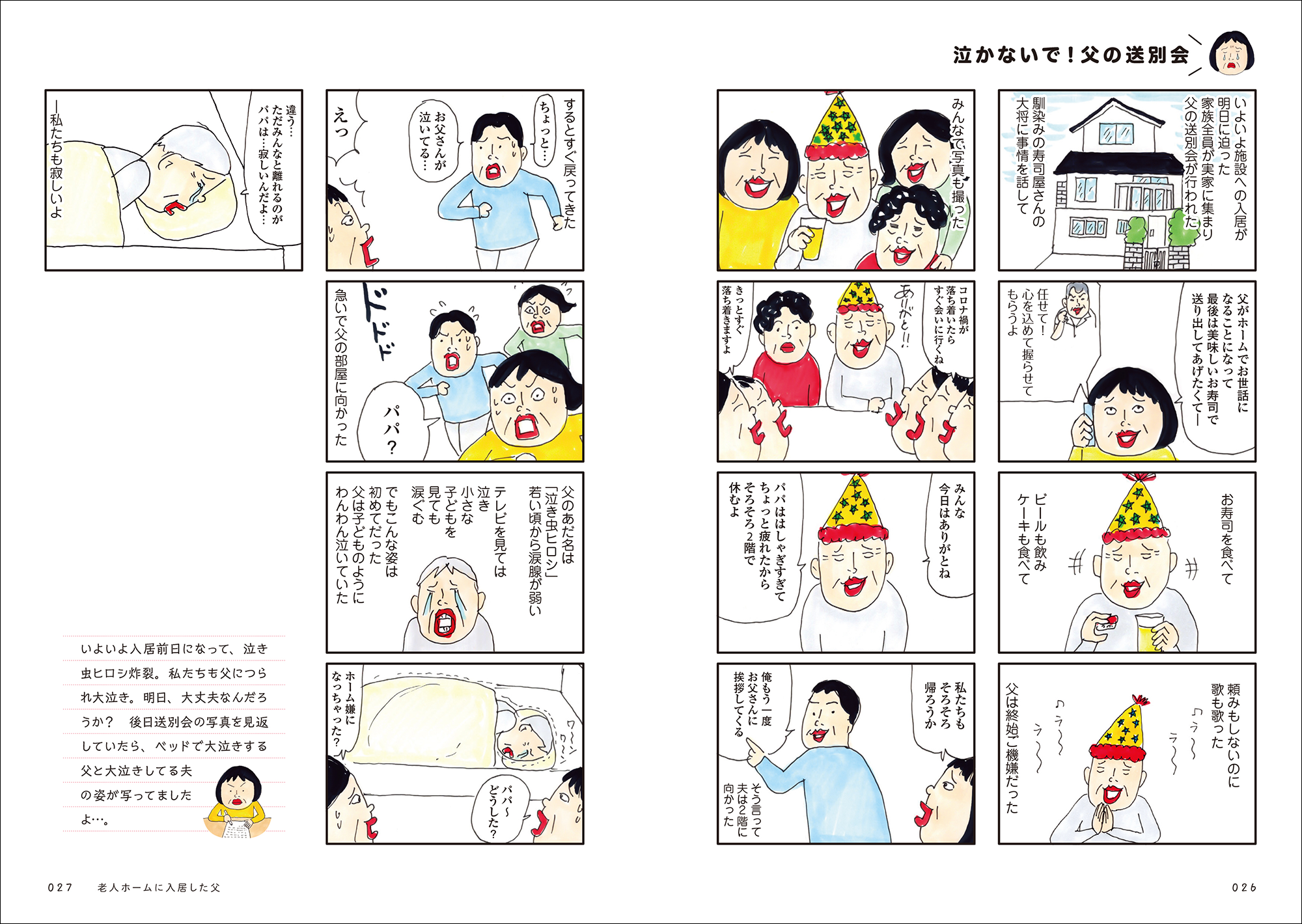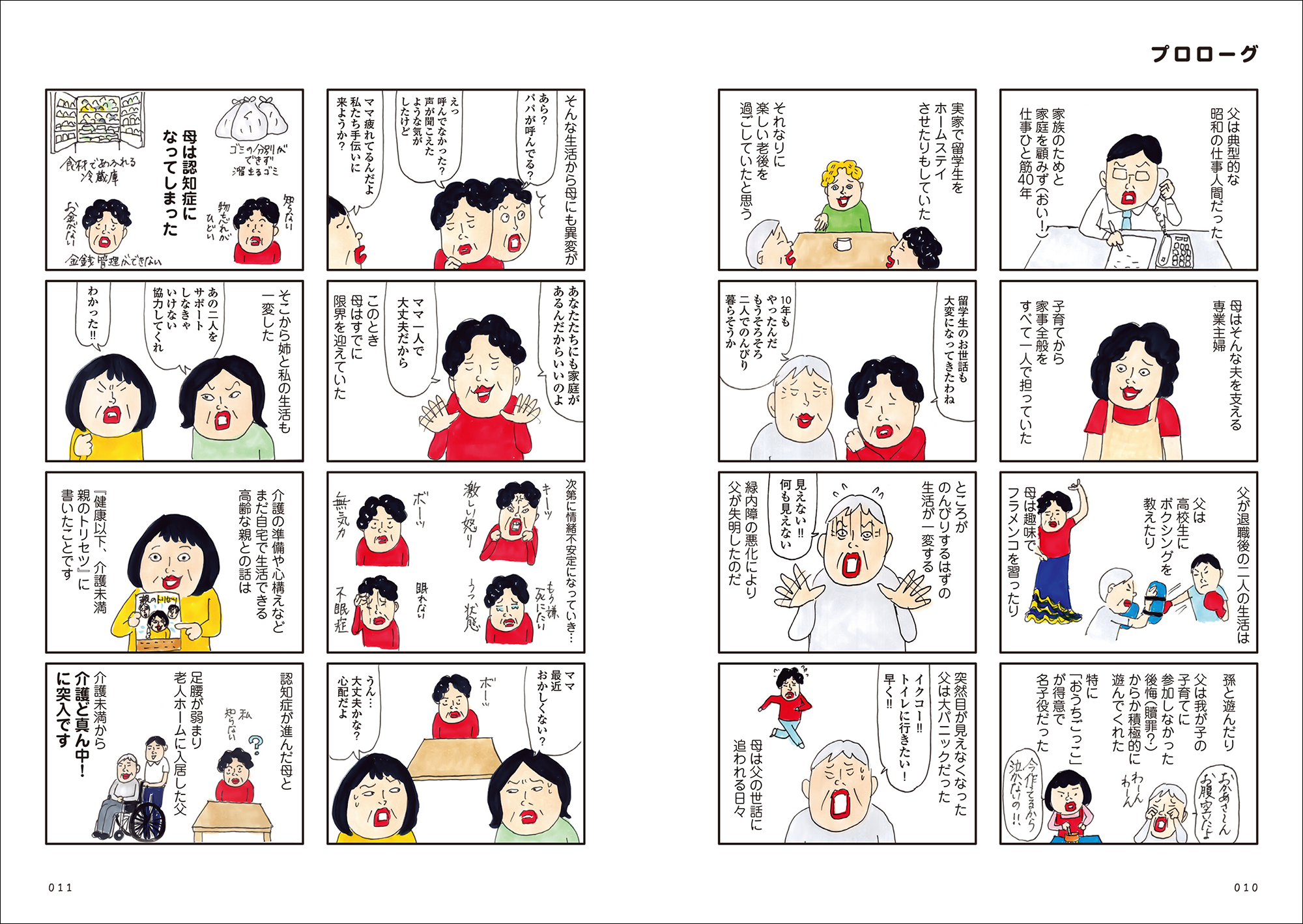 母は口から出る年齢がどんどん若くなるわ、父はせん妄ワールドに突入するわ、カータン節炸裂の爆笑エピソードも満載です。