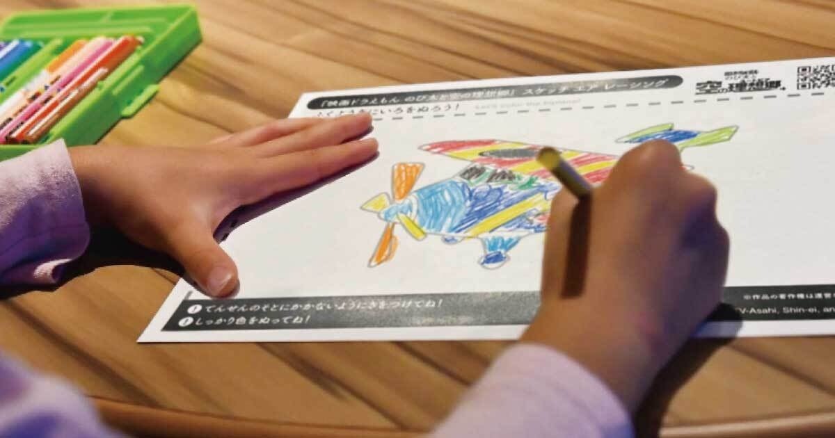場。映画の中で重要なひみつ道具として登場するカラフルなプロペラ機をモチーフに、自分の手で飛行機を“デザインして・立体化して・競い合って”楽しめる、想像力を刺激する次世代お絵かきアトラクションです。