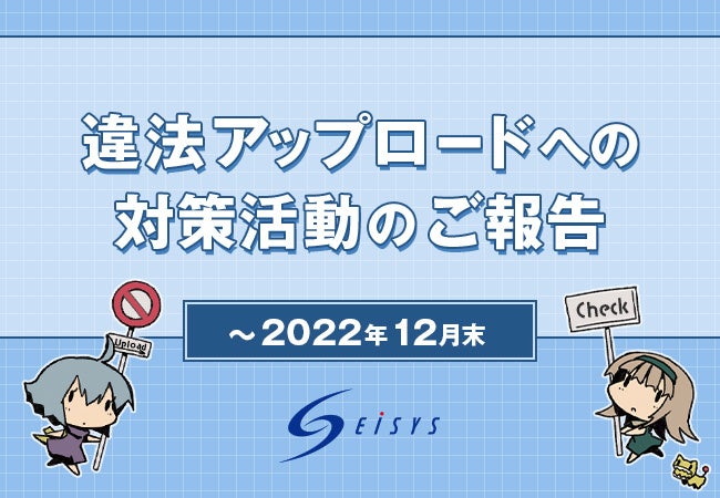 株式会社エイシス(所在地:東京都千代田区、代表取締役:藤井純)は、二次元コンテンツに関わる事業を行う企業として、インターネットにおけるコンテンツの違法アップロードへの対策に取り組んでおります。2022年12月末までの活動をご報告いたします。