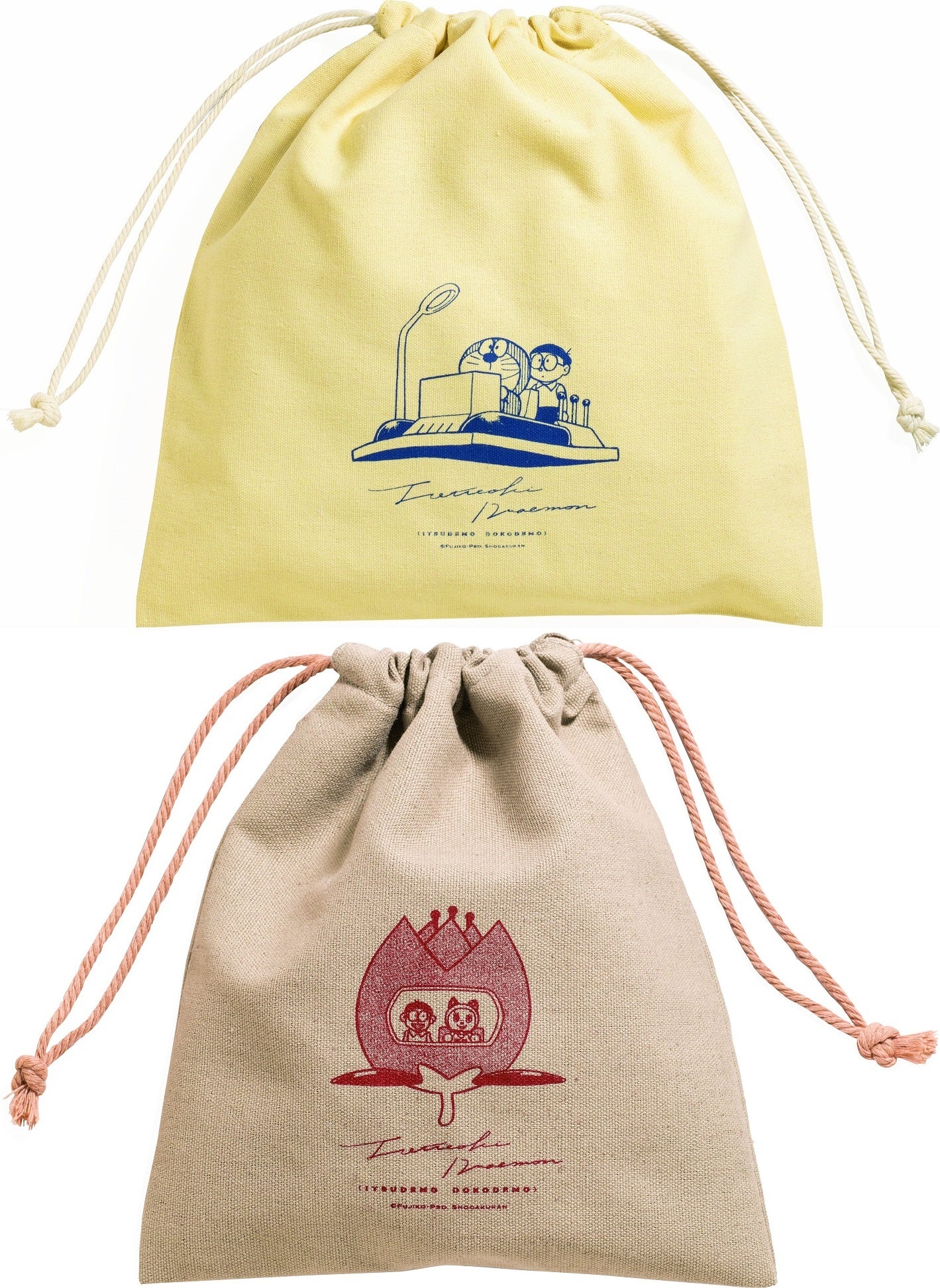 ドラえもんの“旅”の象徴であるタイムマシンがデザインされた、色味・風合いにこだわった特製の巾着袋となっています。