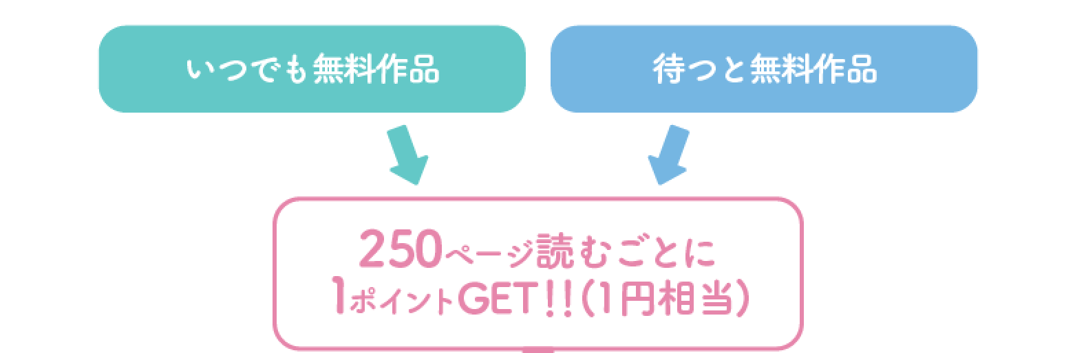 「いつでも無料作品」「待つと無料作品」を読むことで、ポイントが貯まるので、無料で楽しくポイントを貯めることができます。