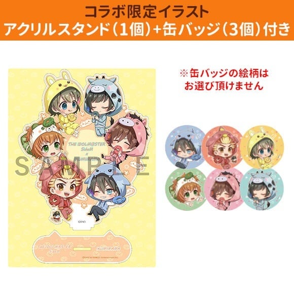 イクミママとのコラボ限定イラストの【アクリルスタンド】、イクミママとのコラボ限定イラストの【缶バッジ(全6種類)3個】が付いた3種類のセットをご用意しました。