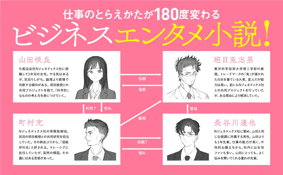 他にも、全8章の物語を通して、日々のビジネスに役立つ思考法を伝えていきます。読者は主人公の咲良に自身を重ねながら、「なんとなく」ではなく、事実やデータに基づいて知的で冷静に考えるためのモノの見方が身についていきます。