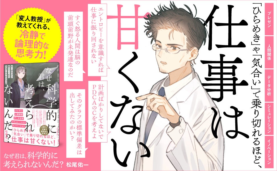 ビジネス書籍や実用書を中心に扱う出版社である株式会社クロスメディア・パブリッシング(東京都・渋谷区、代表取締役・小早川幸一郎)は、2023年3月2日(木)に新刊『なぜ君は、科学的に考えられないんだ?』(松尾佑一著)を出版しました。国立大学の准教授でありながら、文学賞受賞経験もある現役の小説家だからこそ書けた、「ビジネスに必要な科学的思考を小説スタイルで伝えるビジネス書」です。冷静で論理的な「判断」を求められるビジネスパーソンに向けて、データや数字と正しく向き合い、活用するためのノウハウをお伝えします。