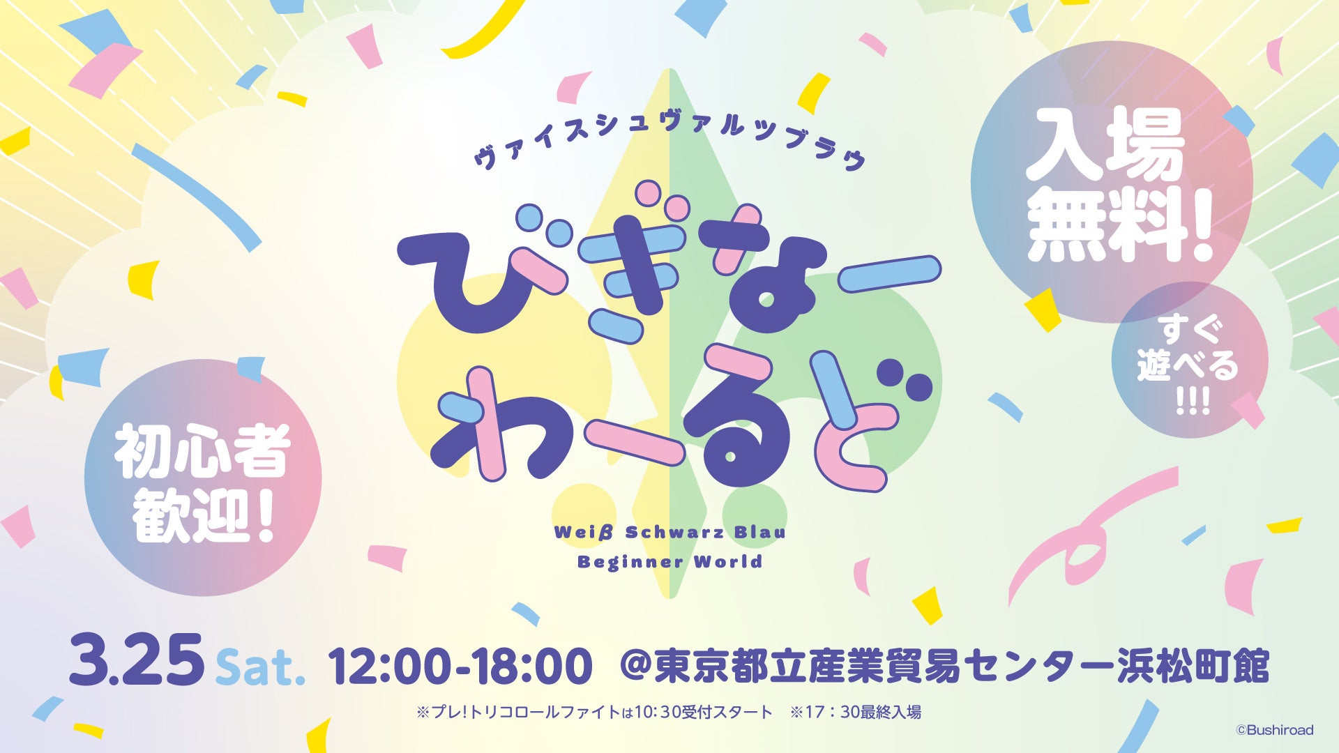 株式会社ブシロード(本社:東京都中野区、代表取締役社長:木谷高明)は、ヴァイスシュヴァルツブラウ初のイベントとなる『びぎなーわーるど』を3月25日(土)東京都立産業貿易センター浜松町館にて開催することをお知らせいたします。