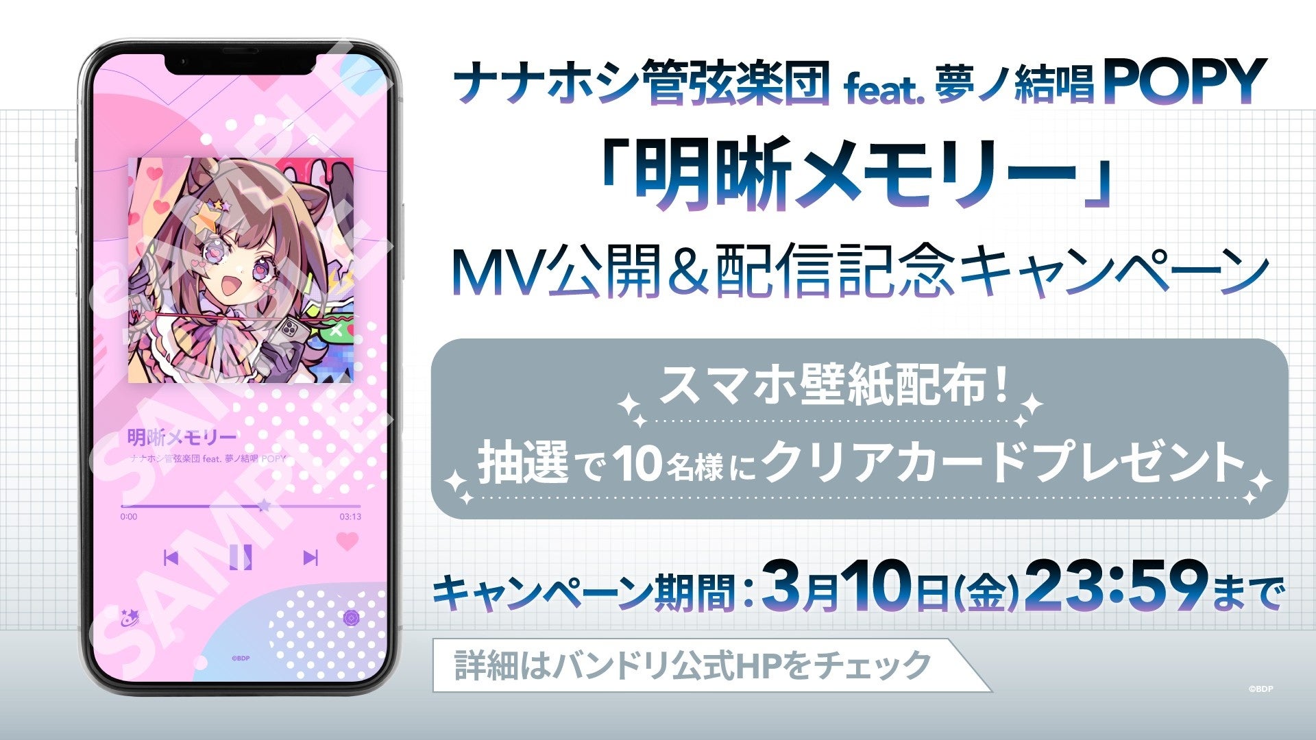 ナナホシ管弦楽団 feat. 夢ノ結唱 POPYのオリジナル曲「明晰メモリー」のMV公開および、各音楽配信サービスでの配信を記念してキャンペーンを開催いたします。
