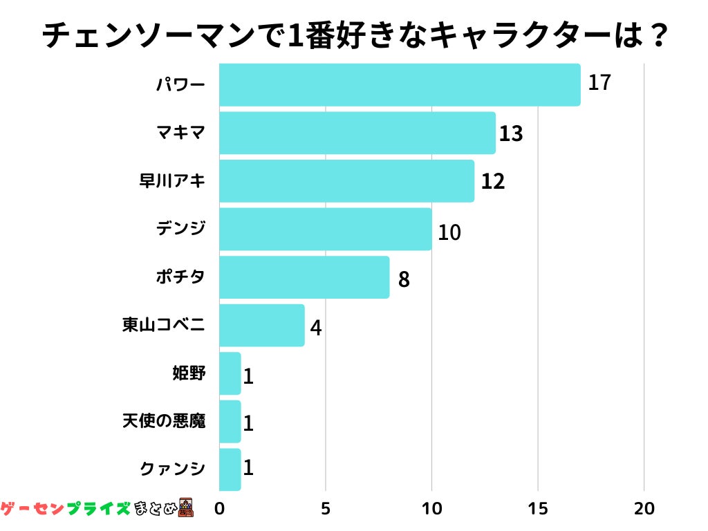 「チェンソーマンの中で1番好きなキャラクターについて」アンケート調査した結果、1位は『パワー』でした。
