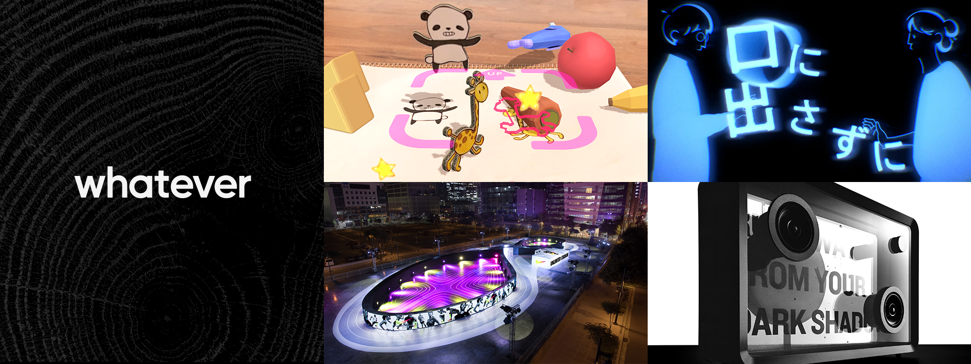 Whateverは、東京、ニューヨーク、台北、ベルリンを拠点として活動しているクリエイティブ・スタジオ。広告、イベント、テレビ番組の企画・制作、サービス・商品開発など、旧来の枠にとらわれないジャンルレスなクリエイティブ課題に対して、世界的に評価されている企画力・クラフト力を持つメンバーと、最新の技術を駆使した開発を実行できるメンバーが共同で携わることで、「世界の誰も見たことがないけれど、世界の誰もが共感できる」ようなアイデアを作り続けています。