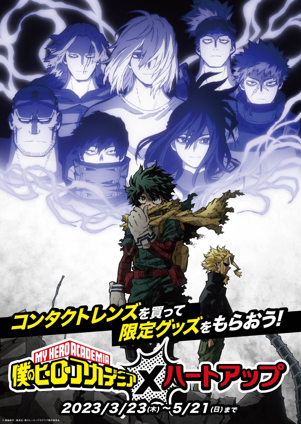 株式会社日本オプティカル(本社:愛知県名古屋市 代表取締役社長:前田貴志)は、2023年3月23日(木)より、コンタクトレンズ・メガネ専門店ハートアップと、TVアニメ6期が絶賛放送中の「僕のヒーローアカデミア」(原作:堀越耕平(集英社「週刊少年ジャンプ」連載))がコラボした、「僕のヒーローアカデミア×ハートアップキャンペーン」を、全国のハートアップ店舗で実施いたします。