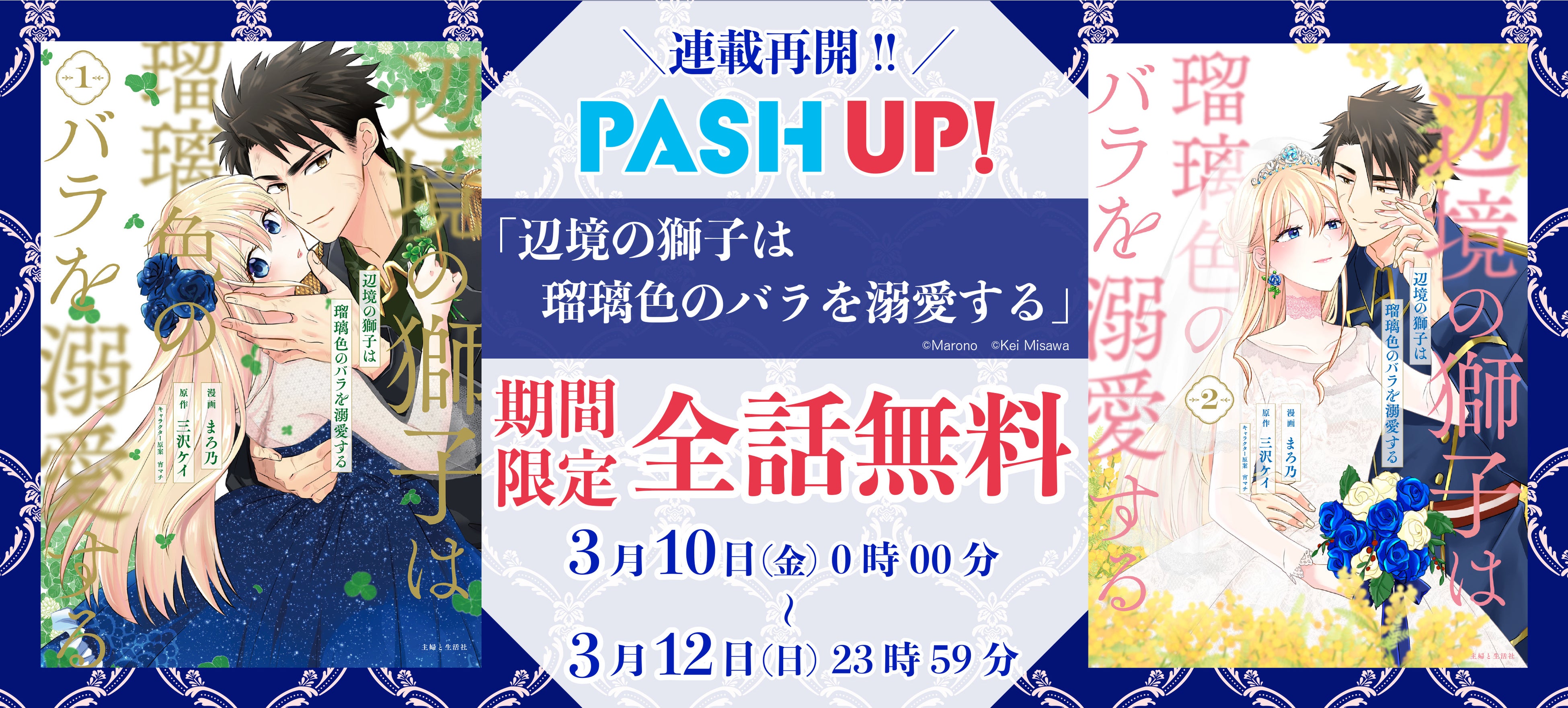 株式会社主婦と生活社が運営するマンガ・ラノベ・雑誌が集結したエンタメサイト『PASH UP!』で連載中、マンガ「辺境の獅子は瑠璃色のバラを溺愛する」の連載再開が決定!!