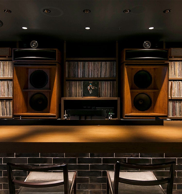 クアトロラボは、クラブクアトロがプロデュースするミュージックカフェ&バーです。店の顔となるハンドメイドの大型スピーカーと、5,000枚を超えるアナログレコード・CDのコレクションに囲まれた空間で、音楽と飲食をお楽しみいただけます。昼はカジュアルなカフェ、夜はこだわりのミュージックバーとして、アナログレコードのあたたかい響きに包まれながら、ゆったりとお寛ぎください。
