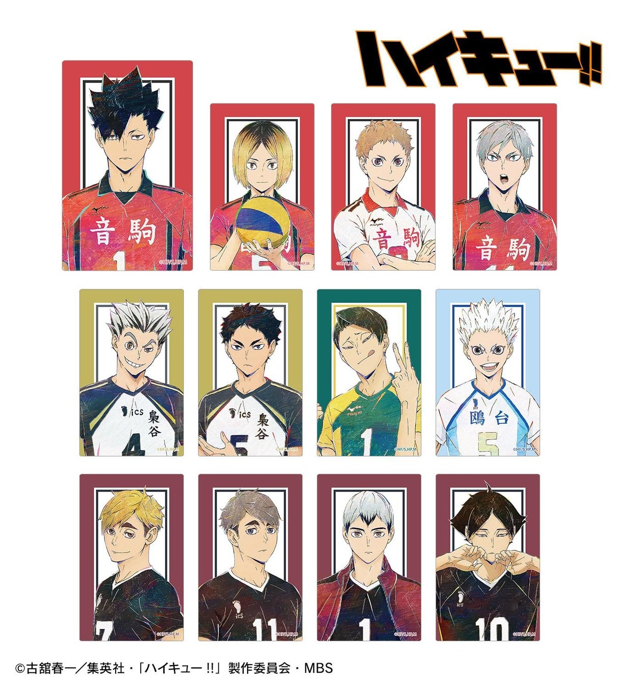 日向翔陽、影山飛雄、月島蛍、山口忠、及川徹、岩泉一、黒尾鉄朗、孤爪研磨、木兎光太郎、赤葦京治、牛島若利、天童覚を新たなタッチで魅力的に表現しました。