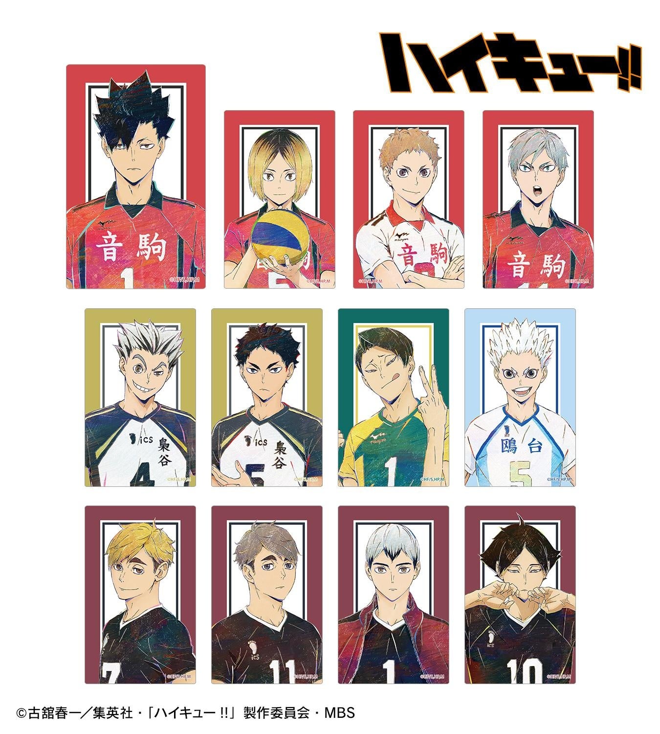日向翔陽、影山飛雄、月島蛍、山口忠、及川徹、岩泉一、黒尾鉄朗、孤爪研磨、木兎光太郎、赤葦京治、牛島若利、天童覚を新たなタッチで魅力的に表現しました。