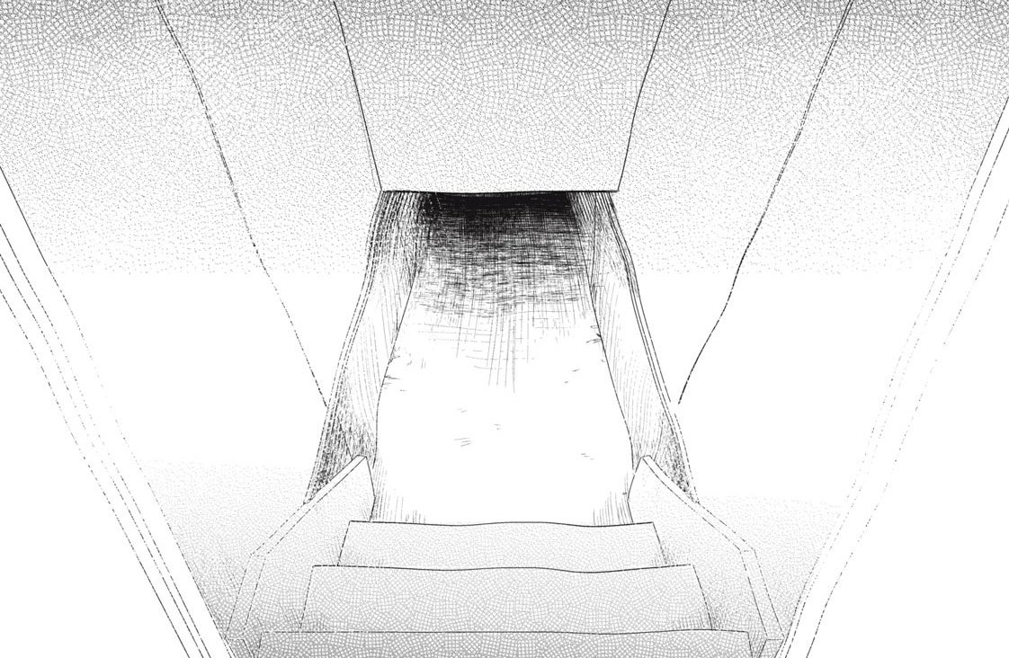・床下に進む階段が、熱気で歪んでいる様子。なんの変哲もない絵に見えますが、のちに牙をむく家のおそろしさが少し垣間見れるカットです。話が進んだ後にも、ぜひ振り返ってみて欲しいシーンです。
