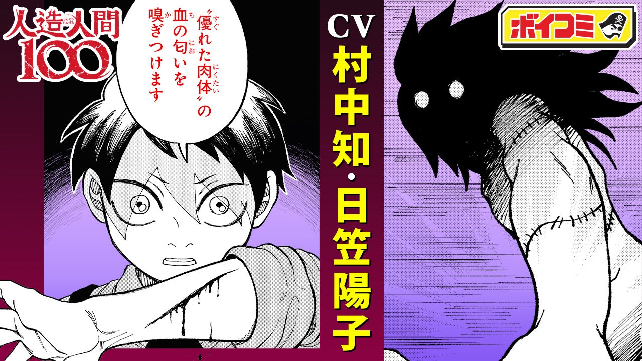 週刊少年ジャンプ連載開始を記念してYouTubeジャンプチャンネル(https://www.youtube.com/c/jumpchannel)にて、3月12日(日)16時に声優の村中知さん・日笠陽子さんが出演する『人造人間100』ボイスコミックを公開。