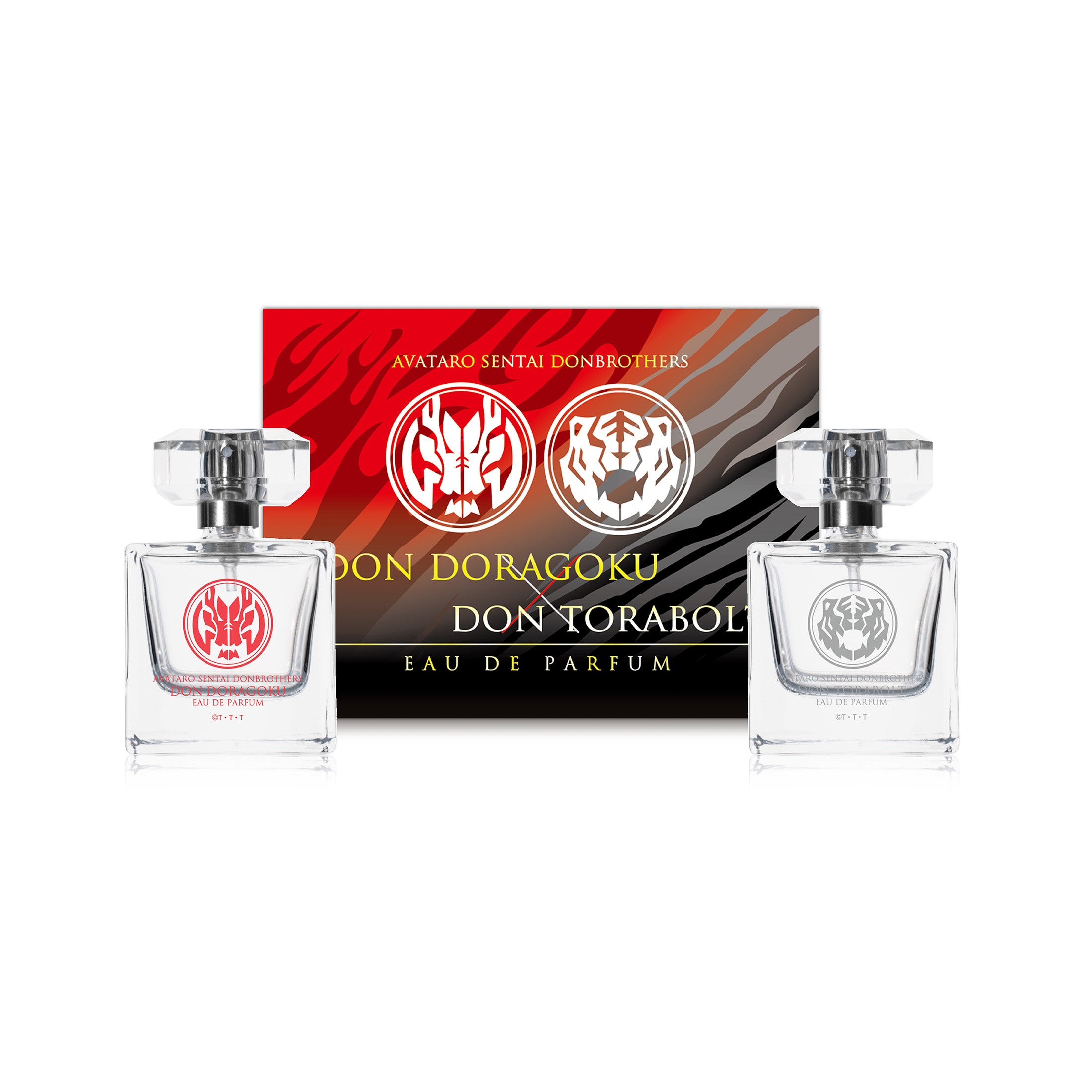 「タロウに代わる者」として田舎から上京してきた熱血漢・桃谷ジロウが戦士の力に覚醒し、アバターチェンジするドンドラゴクウと、桃谷ジロウがタロウへの対抗意識から覚醒し、アバターチェンジするドントラボルトをイメージした香水のセットです。