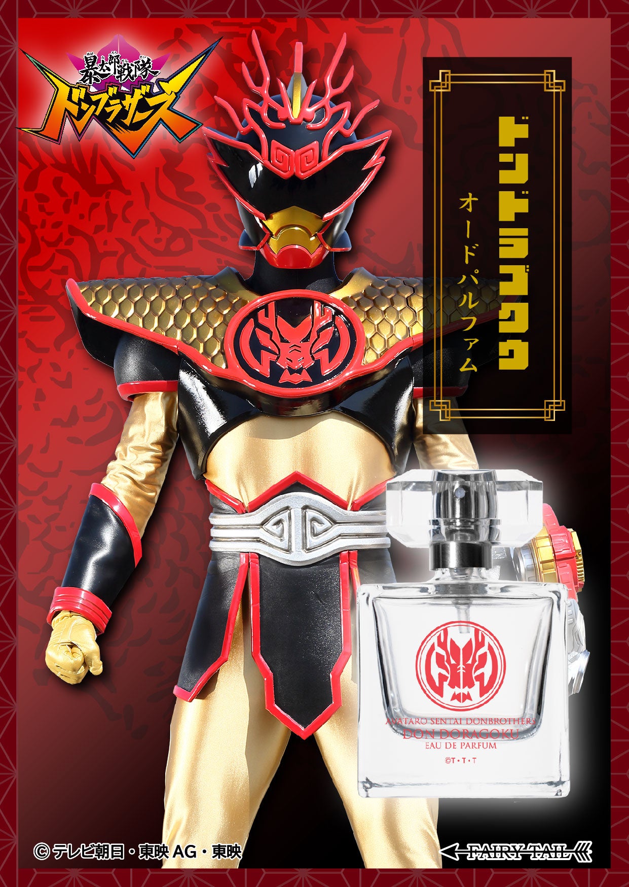 香水の輸入販売を手がけるフェアリーテイル株式会社(東京都港区)は、スーパー戦隊シリーズ第46作となる暴太郎戦隊ドンブラザーズより桃谷ジロウがアバターチェンジする戦士ドンドラゴクウ/ドントラボルトをイメージした香水を発売します。