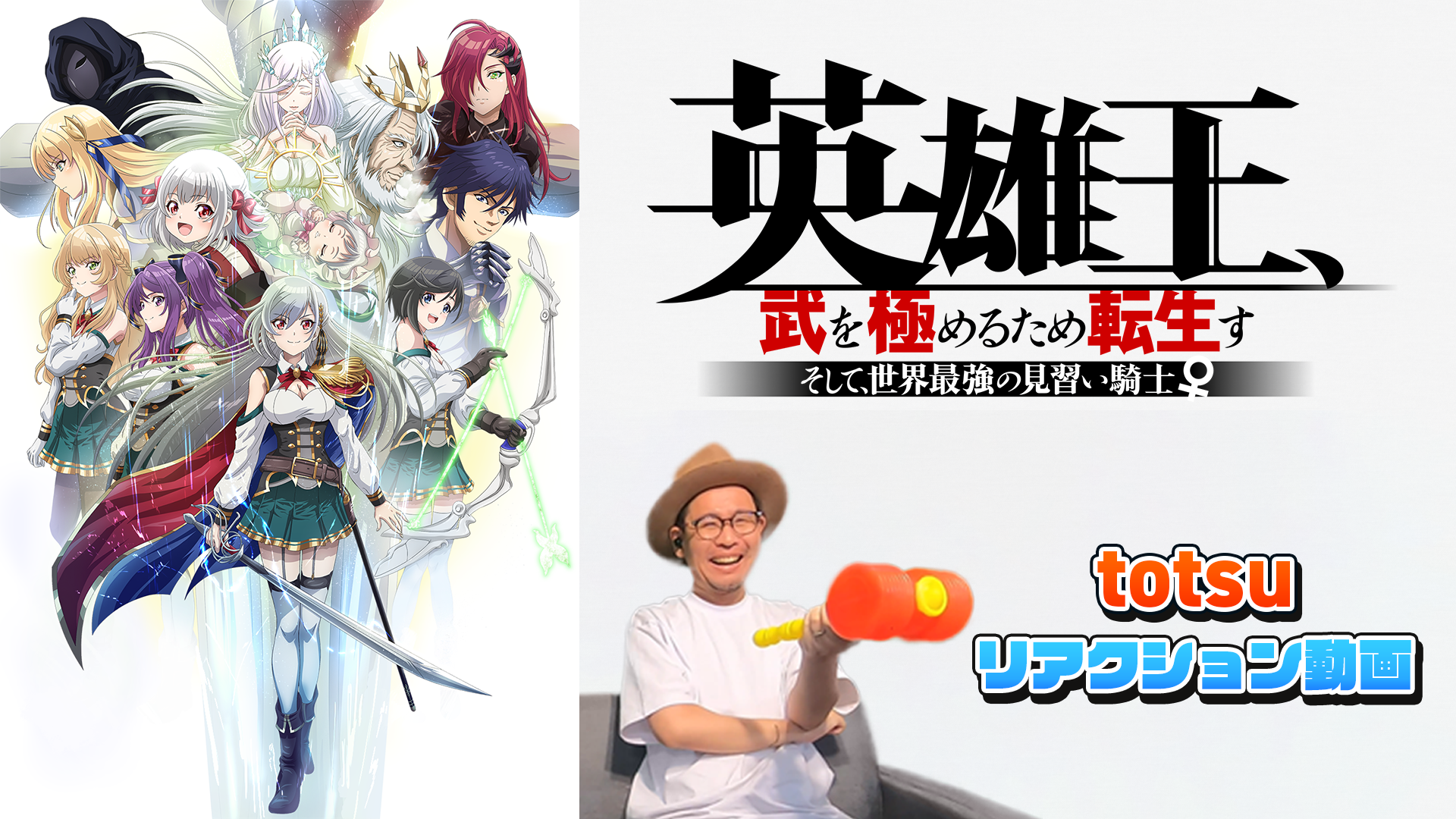 2023年3月14日(火)0時より、dアニメストアにて「【初見】『英雄王、武を極めるため転生す 〜そして、世界最強の見習い騎士♀〜』totsuリアクション動画」の配信が開始されました。