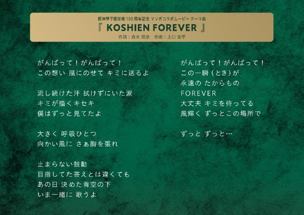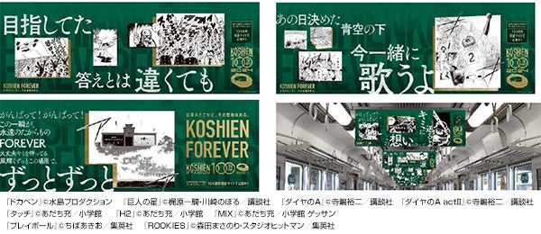 また、第三弾映像の公開に伴い、阪神甲子園球場100周年記念ラッピングトレインの装飾を、映像に合わせてマンガと歌詞をデザインした中吊りポスターに変更するほか、第95回記念選抜高等学校野球大会期間中を中心に、阪神電車の大阪梅田駅、神戸三宮駅の装飾が100周年仕様となります。