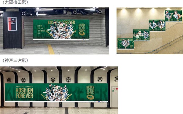 阪神電車の大阪梅田駅、神戸三宮駅にも第95回記念選抜高等学校野球大会期間中を中心に、阪神甲子園球場100周年キービジュアルなどが登場します。