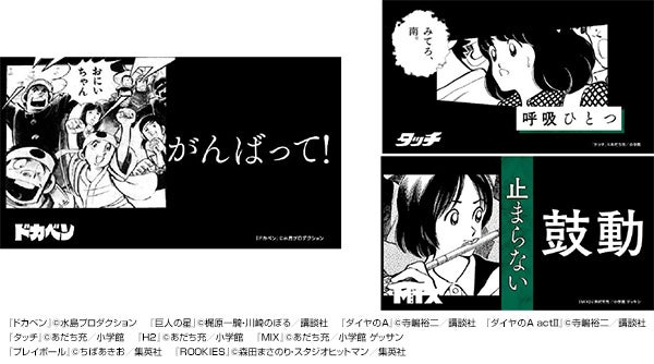 ・使用作品名:「ドカベン」「巨人の星」「ダイヤのA」「ダイヤのA actII」「タッチ」「H2」「MIX」「プレイボール」「ROOKIES」