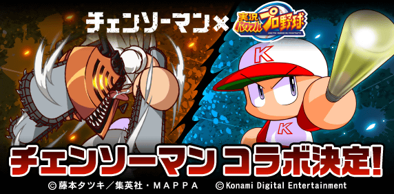 株式会社コナミデジタルエンタテインメントは、人気アニメ『チェンソーマン』とモバイルゲーム『実況パワフルプロ野球』(以下、『パワプロアプリ』)のコラボレーションが明日3月16日(木)メンテナンス終了後からスタートすることをお知らせします。