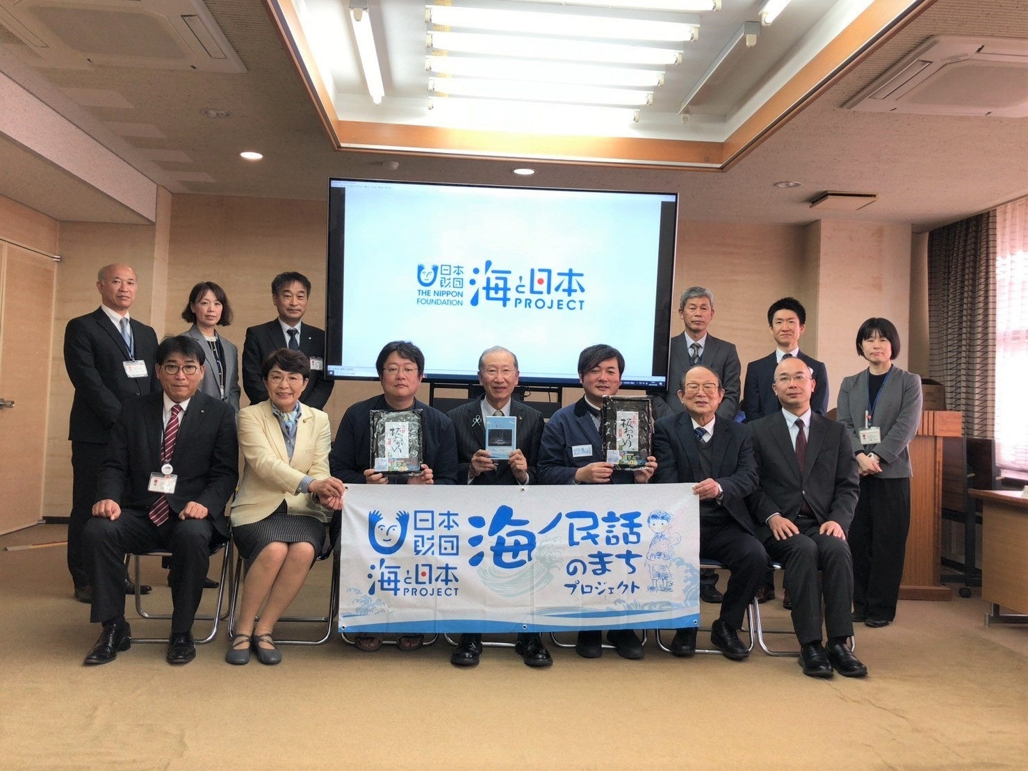 | プログラム | ●挨拶 ●アニメーション上映 ●会談 ・アニメーション完成を受けてフリートーク ・上映会とフィールドワークの実施計画 ・二次的波及のアイディア会議 ●取材(楫野弘和市長) ・今回のアニメーション完成を受けて ・「海ノ民話のまちプロジェクト」に期待すること ●取材(実行委員会) ・今後の民話アニメーションの活用について ・市町村の皆様にひとこと ●フォトセッション ●終了 |