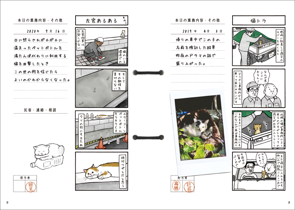 紙面サンプル。書籍版でしか見られないおまけ要素が加わり、もうひと笑いできる日報ができました!
