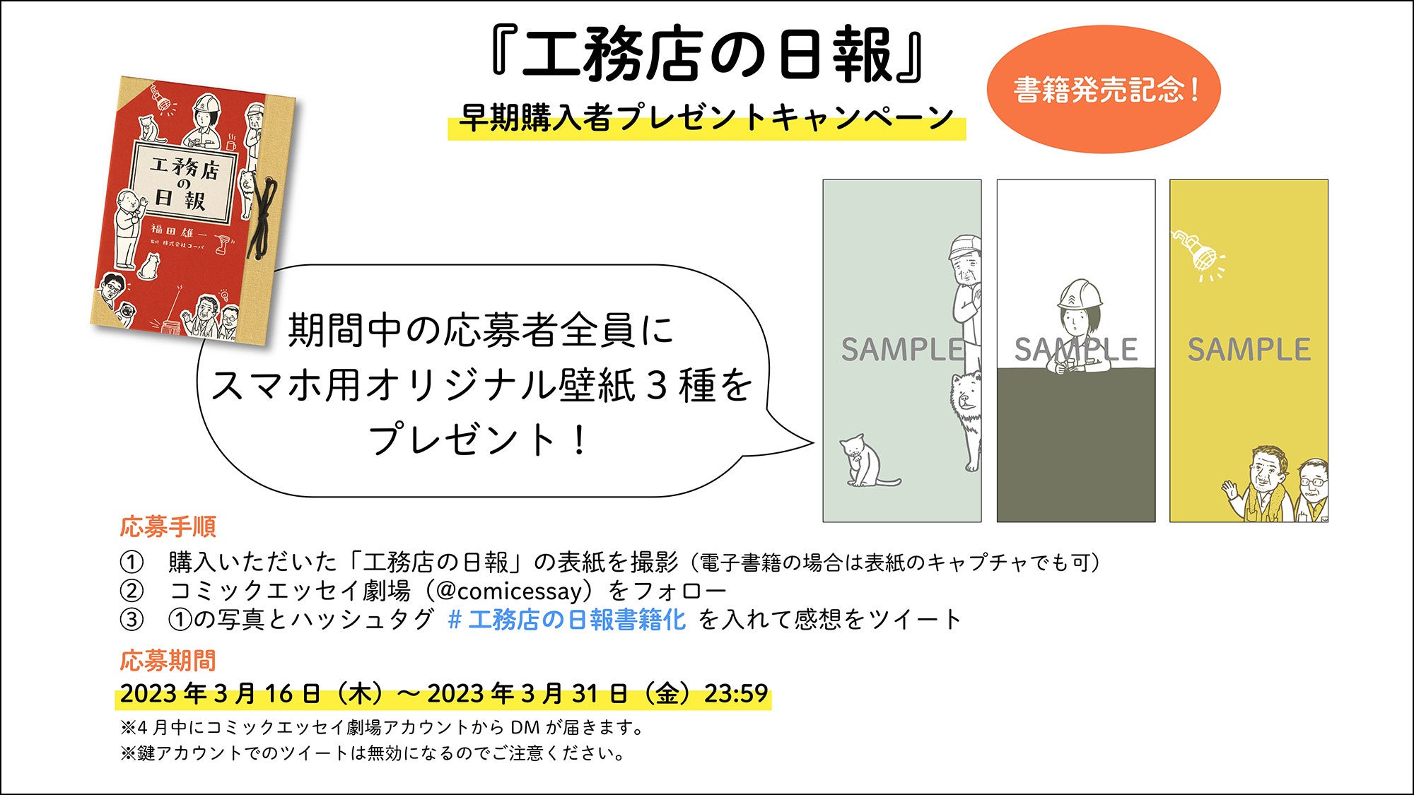 応募いただいた方には、2023年4月上旬、TwitterのDM(ダイレクトメッセージ)にて「@comicessay」より賞品を送信します。