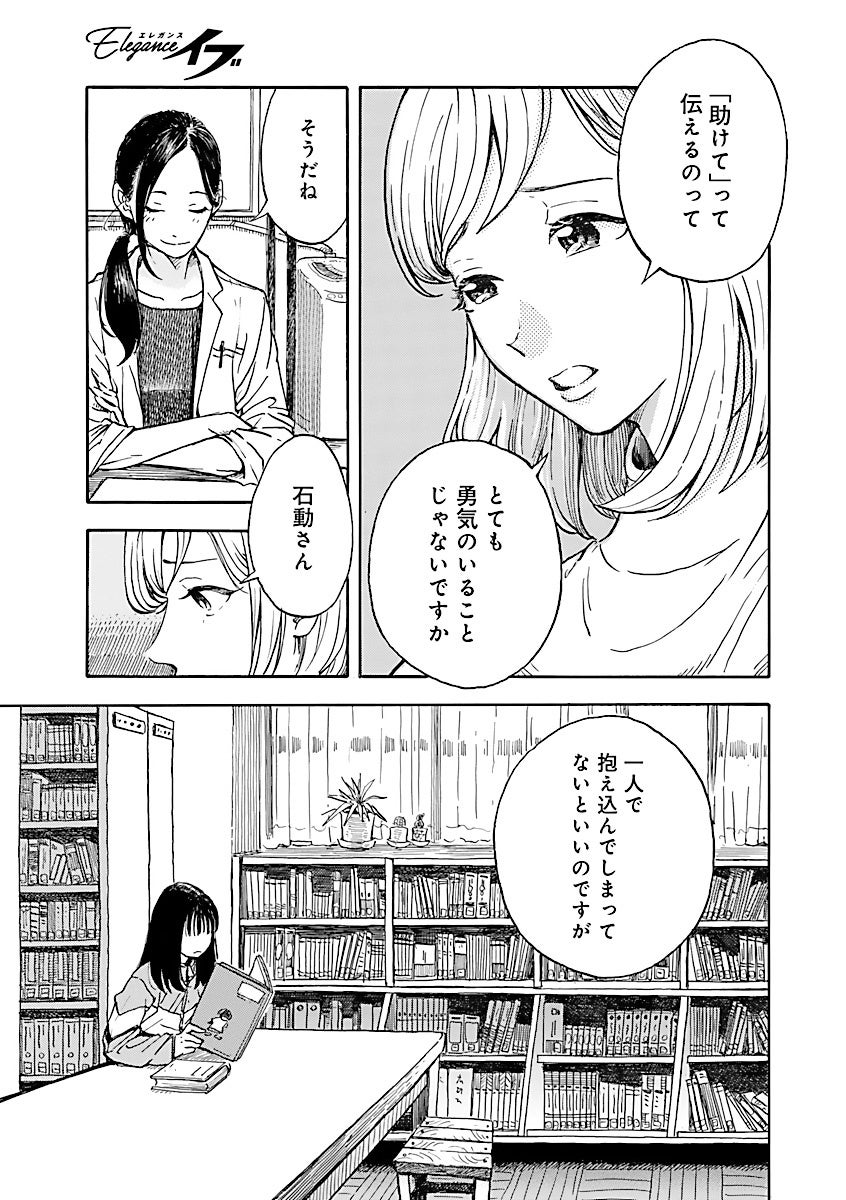 この作品は「イジメの加害者になったのでは…と苦しむ少年」「苦しみから逃れるために自傷行為をする少女」など現代の児童の心の問題に寄り添うスクールカウンセラーの物語。『エレガンスイブ』掲載の読み切りが大反響を呼んだ話題作です。主人公の五加木純架(うこぎ・すみか)は、「ほしみ野小学校」に週一で勤めるスクールカウンセラー。さまざまな悩みを抱える児童たちの心の声を聴き、彼らが勇気を振り絞って発信した「“助けて”の灯」を絶やさないように接する日々を送ります。