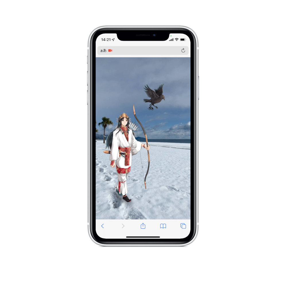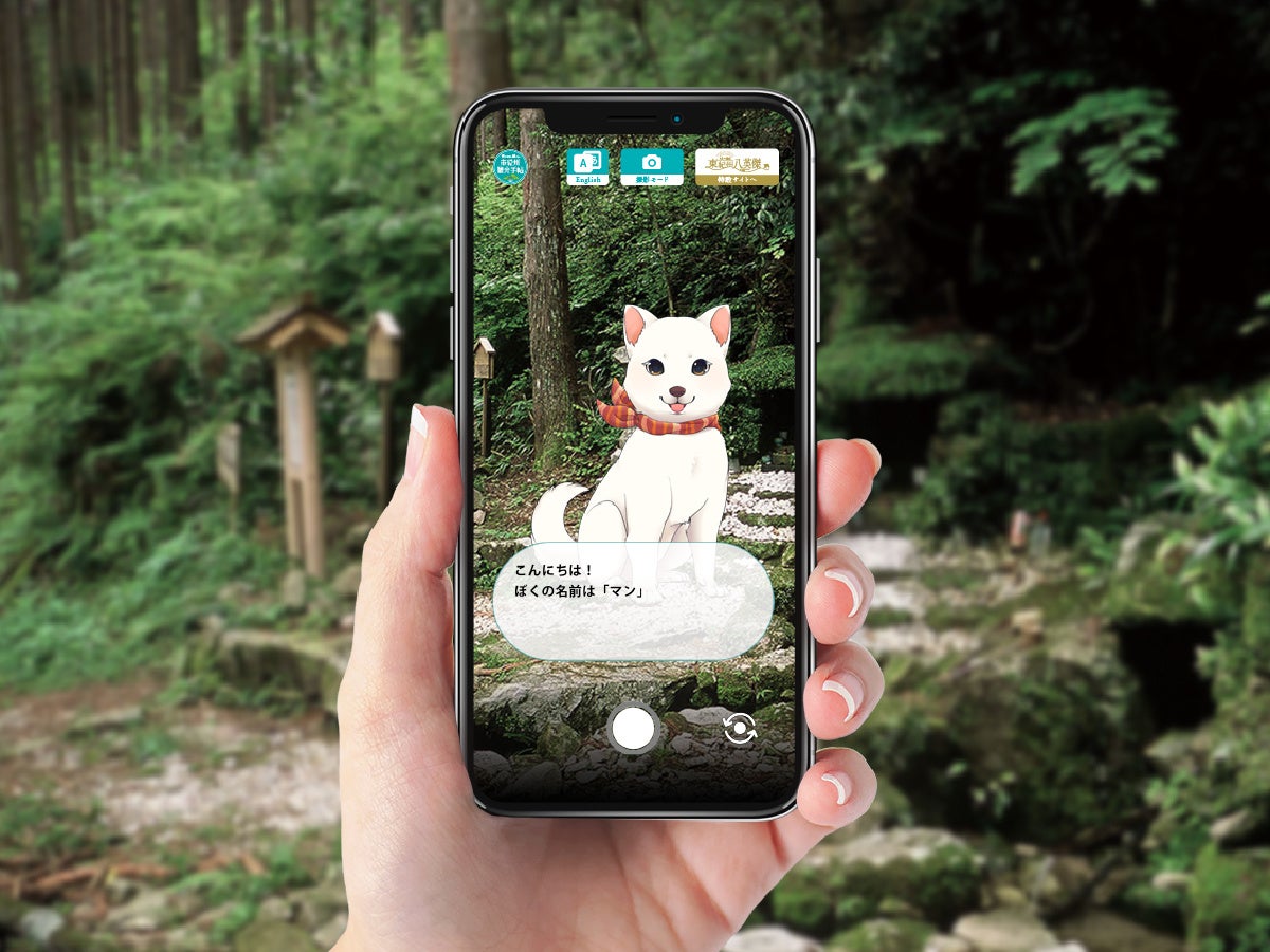 熊野古道などに設置したQRコードを読み込むと、スマートフォン画面上にAR(拡張現実)が表示されます。