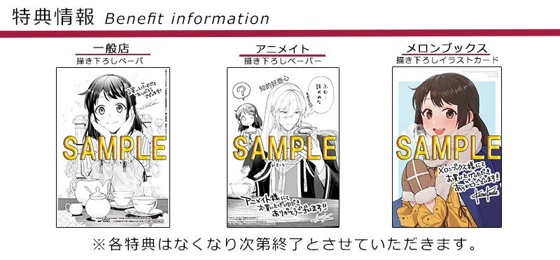 書店:アニメイト(描き下ろしペーパー)、メロンブックス(描き下ろしイラストカード)、その他書店(描き下ろしペーパー)にて実施