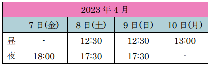 [大阪公演] 2023年4月7日(金)~4月10日(月)
