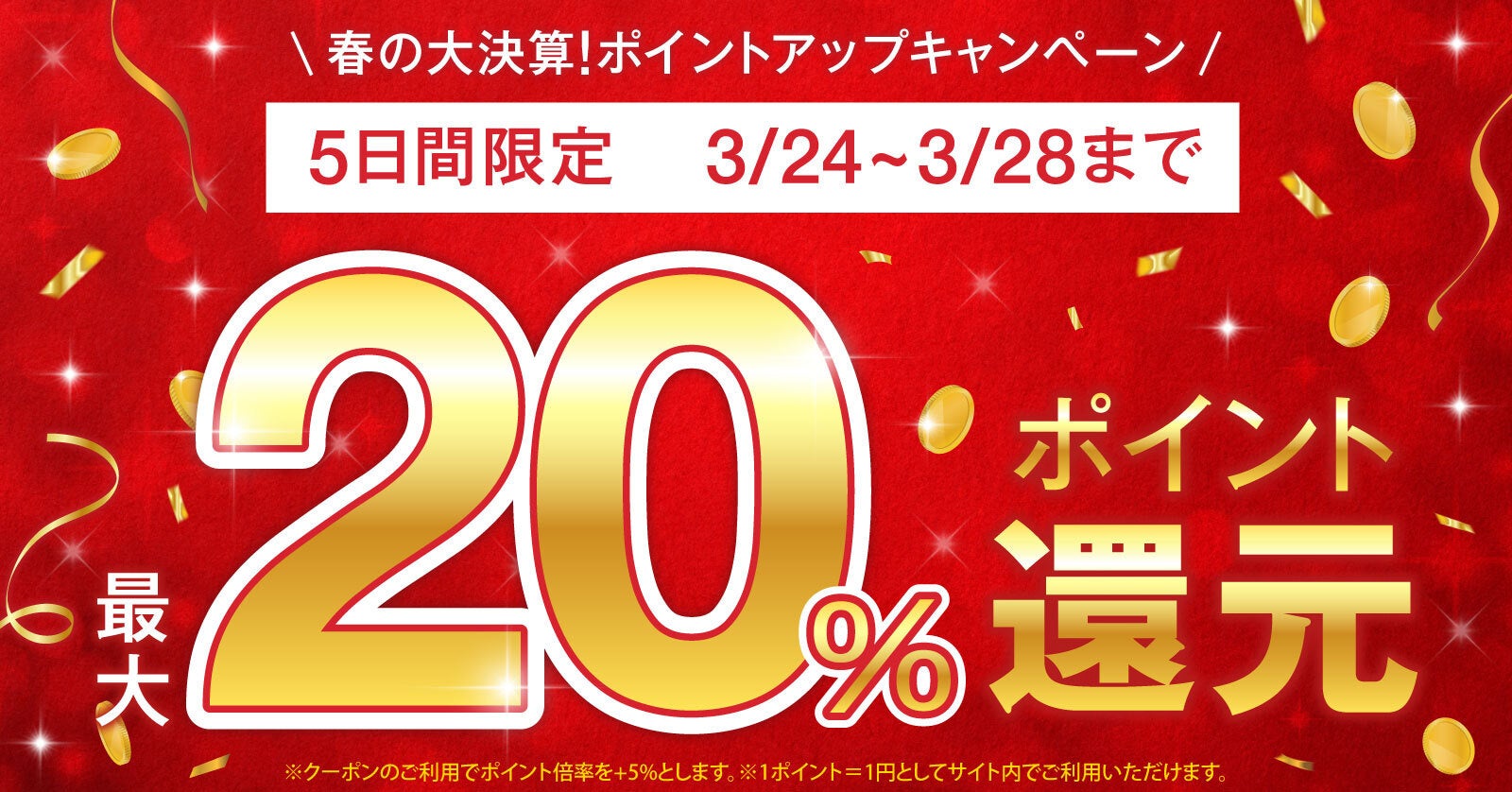 ※ポイントアップには『春の+5%ポイントアップクーポン』クーポンの利用が必要となります。購入確定前にクーポンが適用されているかご確認ください。