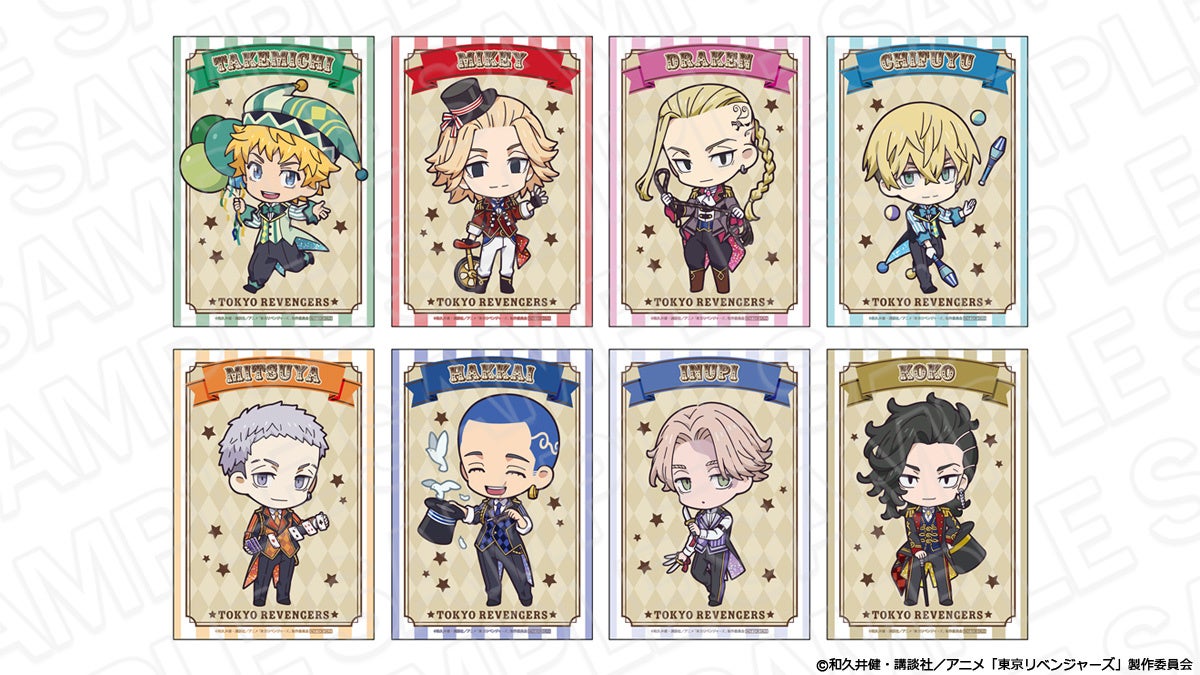 TVアニメ『東京リベンジャーズ』より、サーカスがテーマの新規書き起こしデフォルメイラストを使用した「カンバッジ、アクリルネームバッジ」他、新商品の販売がスタート! 是非チェックしてみてください!